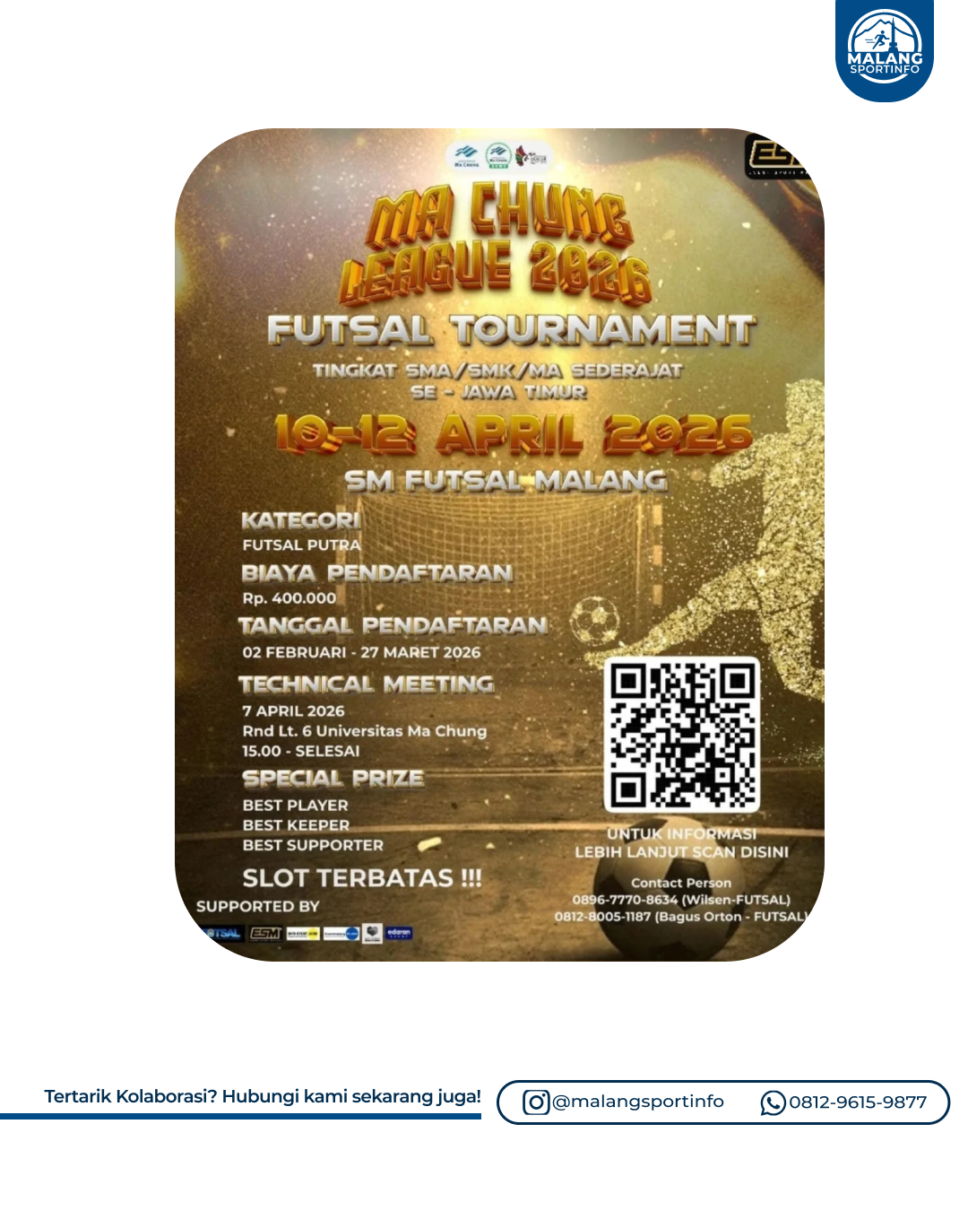 Halooooo pecinta Futsal Pelajar Malang Raya. Rek-rek mari Libur Lebaran tak beri info. "Ma Chung L...