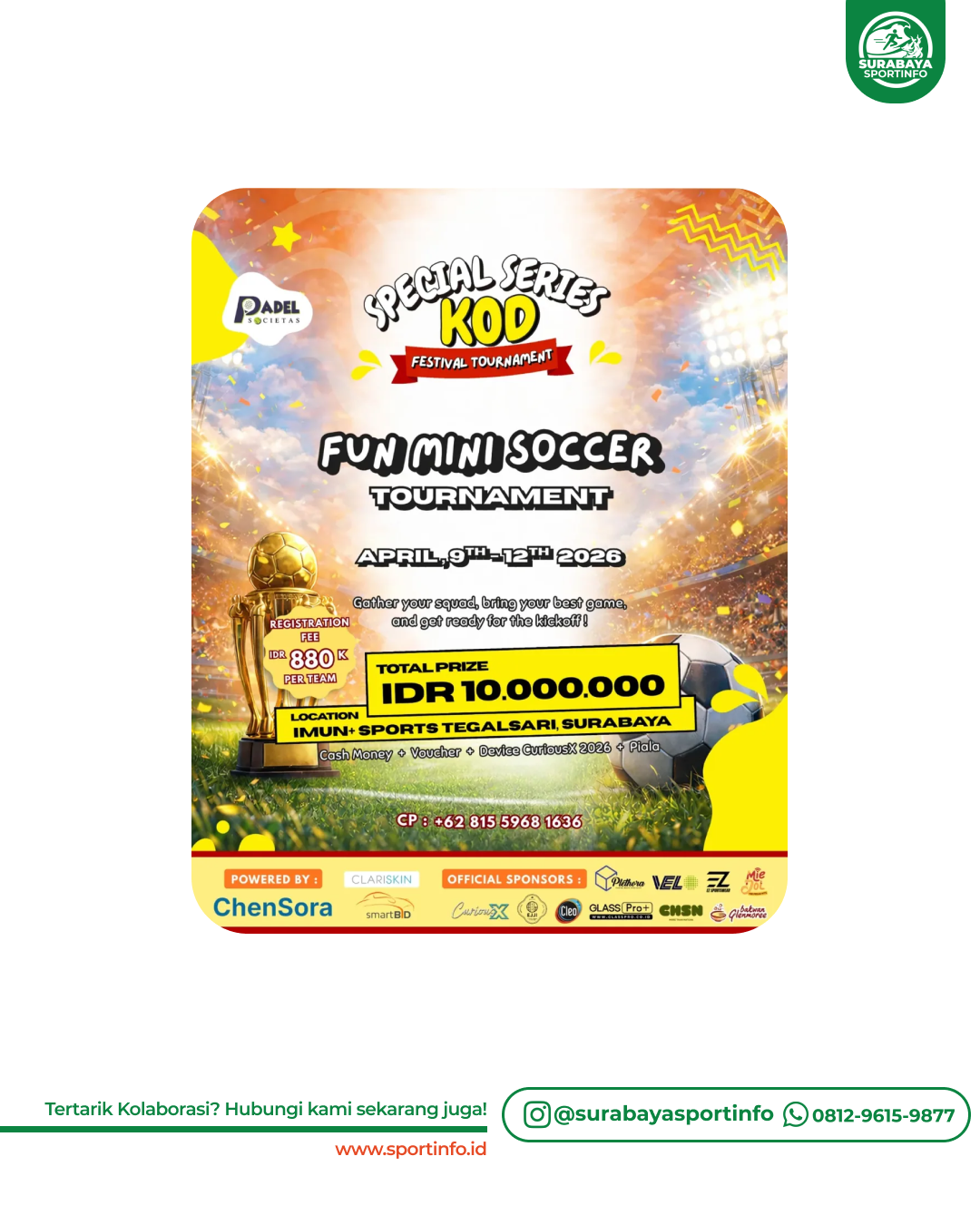 IMUN Sport Surabaya akan mengadakan Fun Mini Soccer Tournament Special Series KOD Festival Tournamen...